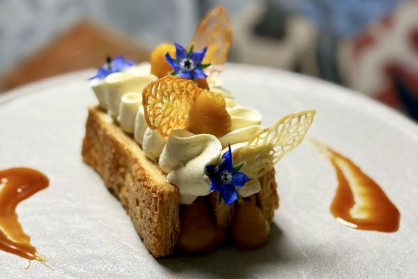 Millefeuille croustillant, vanille-butternut, parfum fève de tonka
